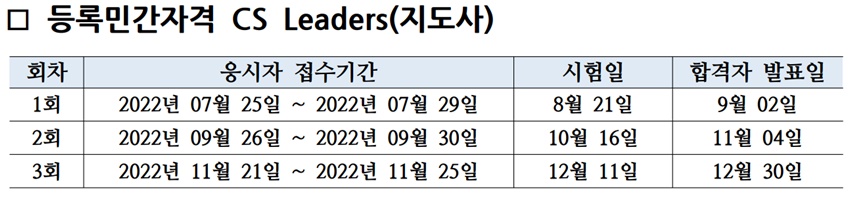 (사)한국정보평가협회는 2022년도 등록민간자격 CS Leaders(지도사) 자격시험을 오는 8월 21일부터 진행한다고 20일 밝혔다.