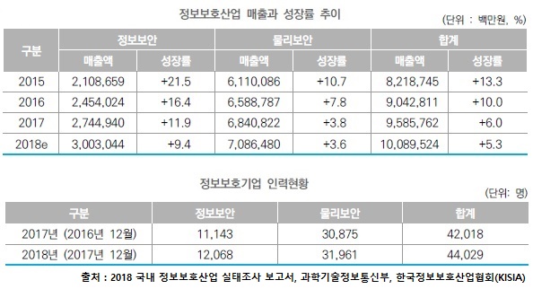 또한 산업계에서도 해당 분야의 투자를 지속적으로 하고 있다. 국내 정보보호산업의 성장률은 2016년 +10%에서 2018년 +5.3% 성장하는 등 매년 성장세가 꾸준히 지속되고 있으며, 2018년 정보보호시장 규모는 10조원을 돌파한 것으로 추정하고 있다. 인력 또한 증가세를 유지(2017년 4만 2018명에서 2018년 4만 4029명으로 전년 대비 4.8% 증가)하고 있다.