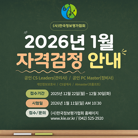 국가공인 CS Leaders(관리사), 개인정보보호사, 국가공인 PC Master(정비사), CS설계사의 시험일정을 공유합니다.
